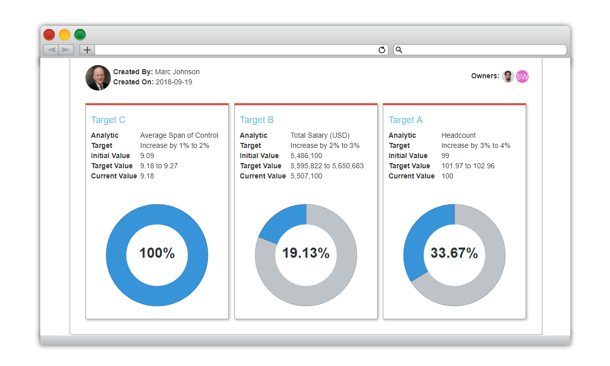 Gardez une image claire de votre organisation grâce à la conception d'organisation et suivez les indicateurs clés de performance résultante de la planification d'une réduction des effectifs.